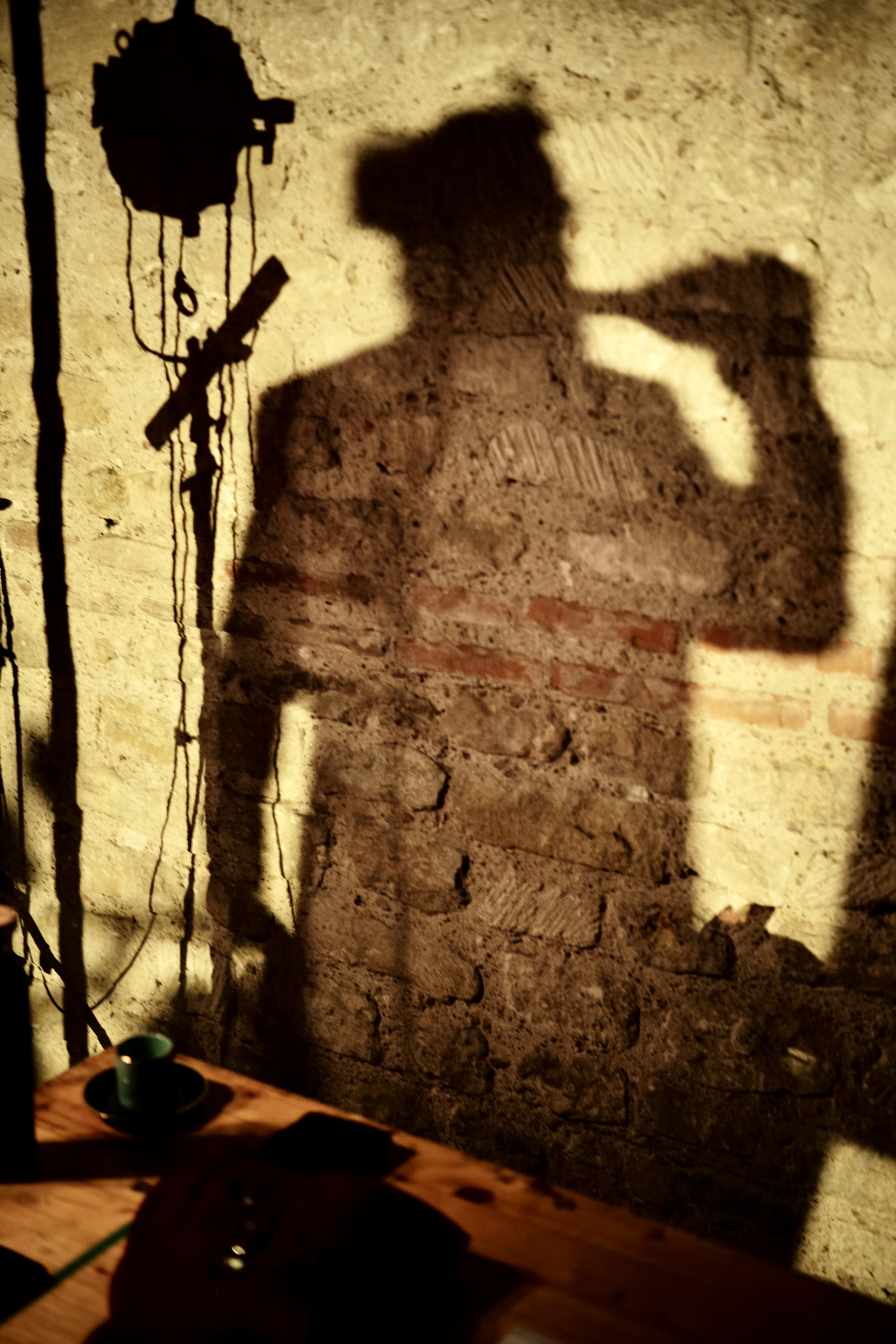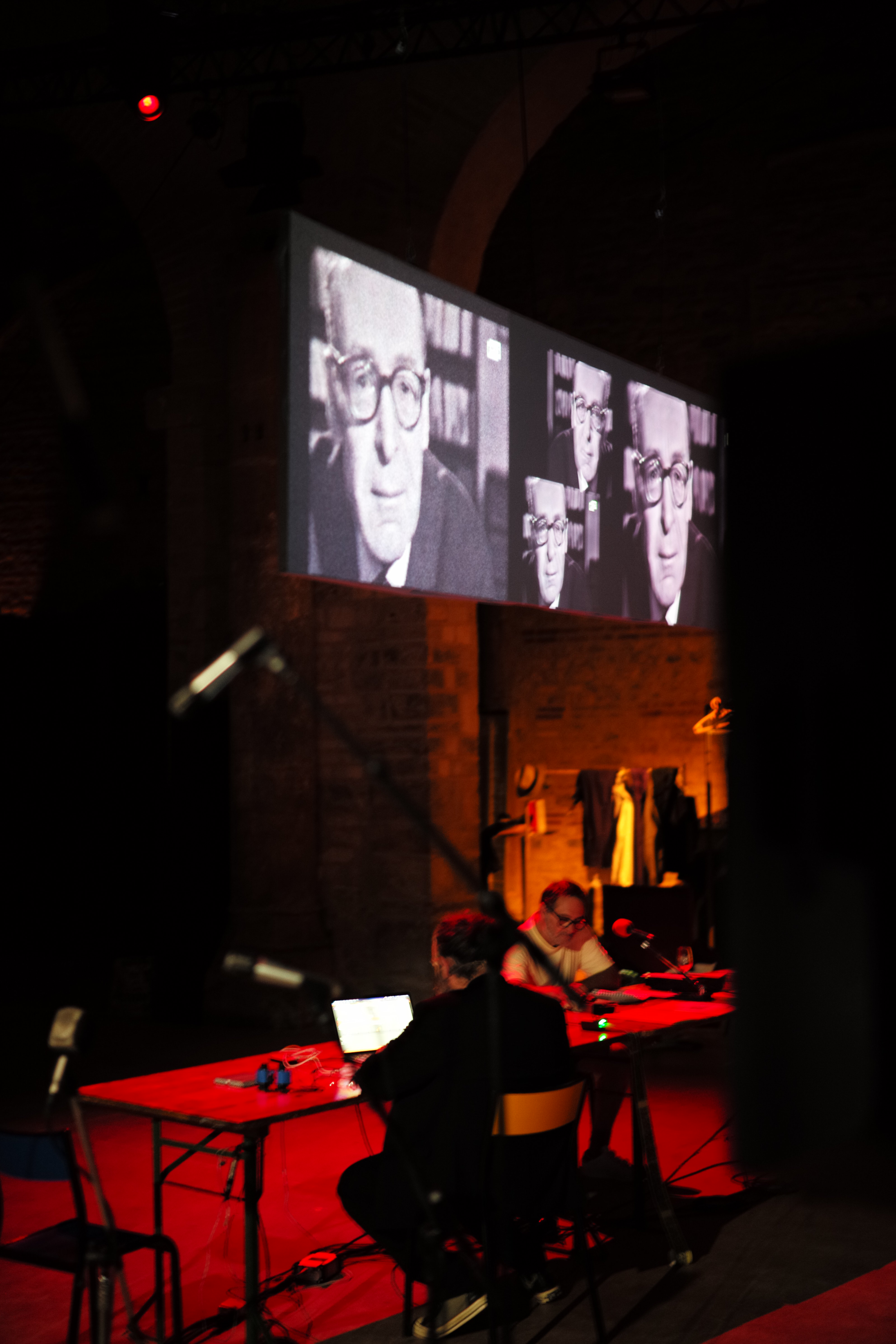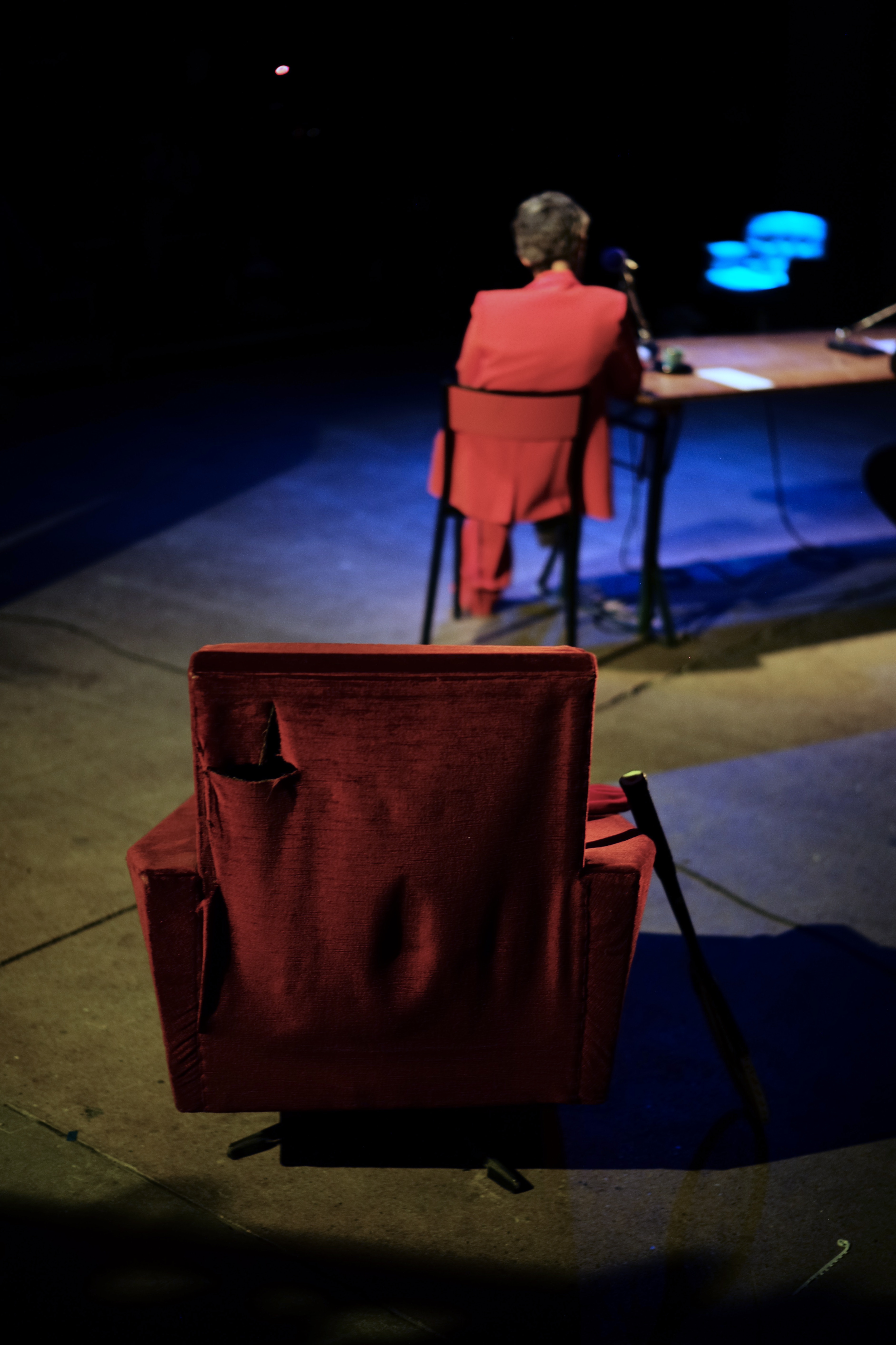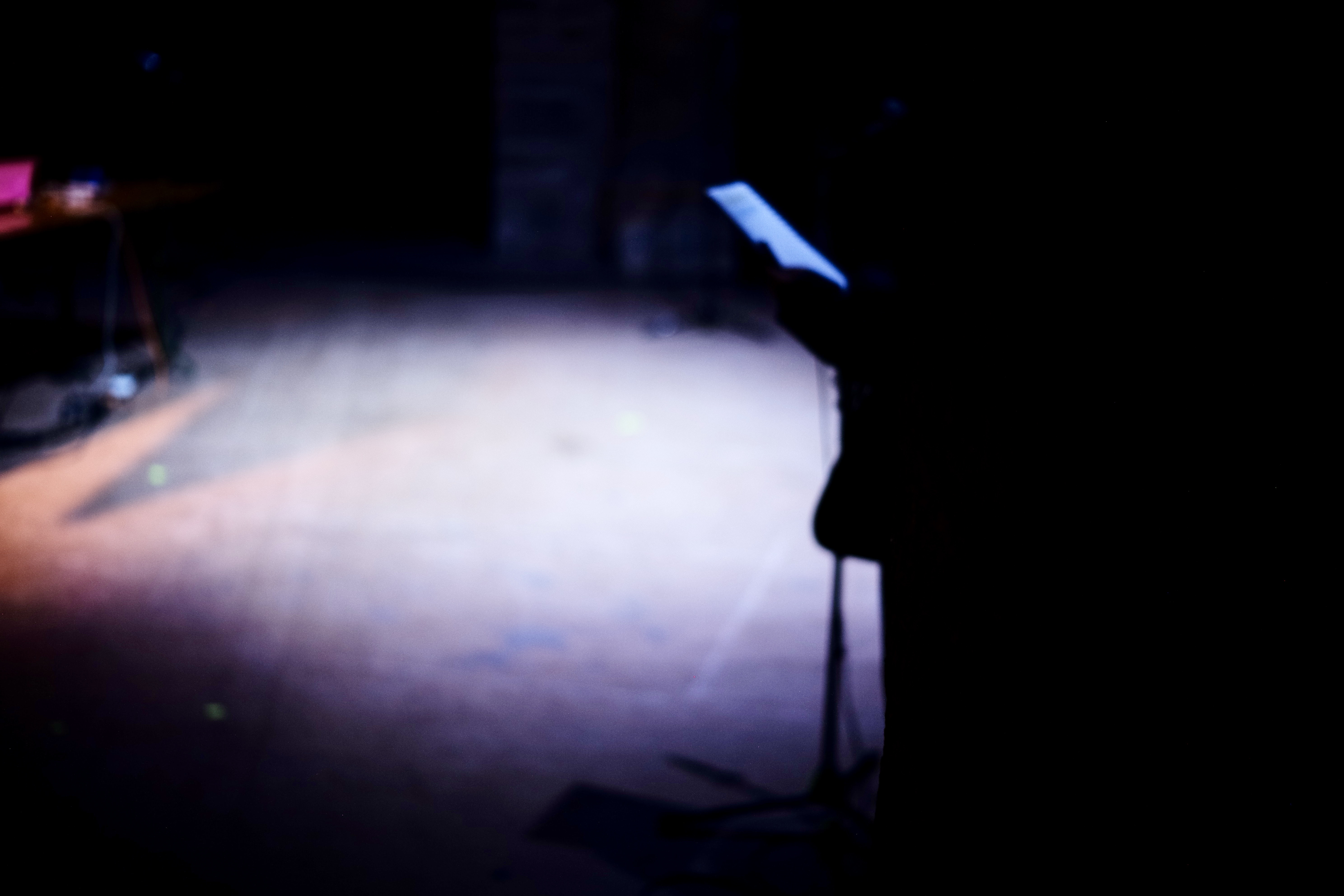 Dans mon dos, les murailles accueillent les projections lumineuses venues, et le lieu de la représentation n’est plus circonscrit au plateau à proprement parler, mais étendu jusqu’aux confins du clos. Enceinte. Lieu total.
