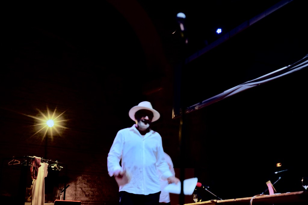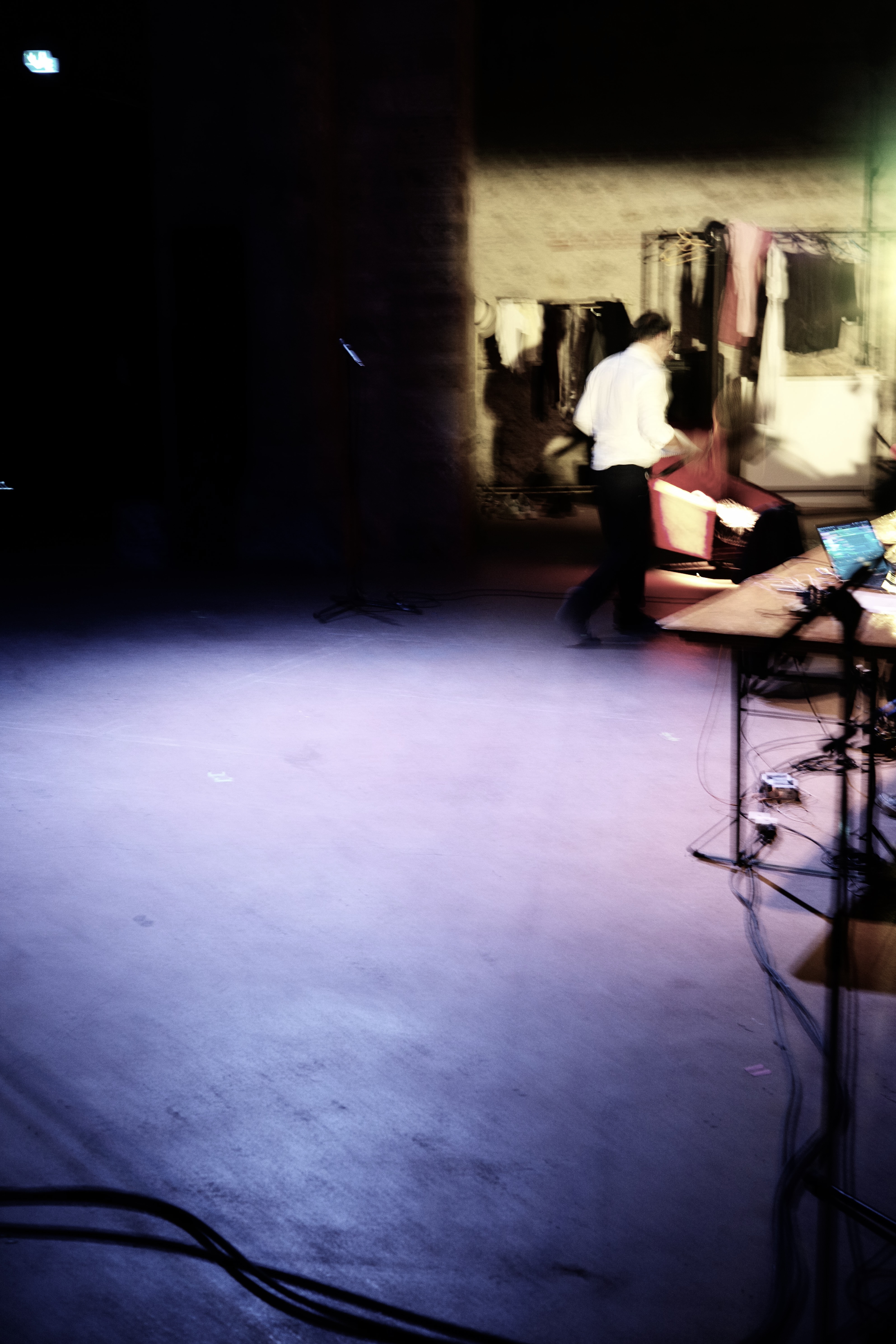 Les intrants apparaissent, sont masqués, prennent droit au plateau, prennent voix, corps, formes -faire vibrer l’air, brandir sons, rugissements, et mélodies- là, quand, où semblent juste, et la justesse consent au bruit et à la fureur. A la joie.