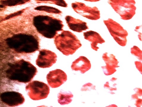 Points (carrés? grégorien?) de pigments ocre (hématite) qui ornent labre et lèvres du pavillon de nacre? Que« lire »?