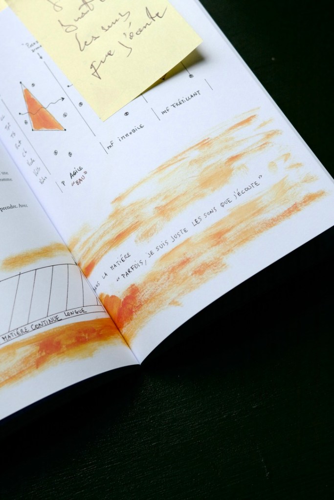 Les partitions de Xavier Charles (didascalies?), reproduites dans l’Oratorio FURTIF (La Volte Editions, l’éditeur d’Alain Damasio pour « les Furtifs ») ouvrent les mêmes énigmes, les mêmes possibles (je pense au jeu du corps, la notion de soundpainting me traverse l’esprit).
