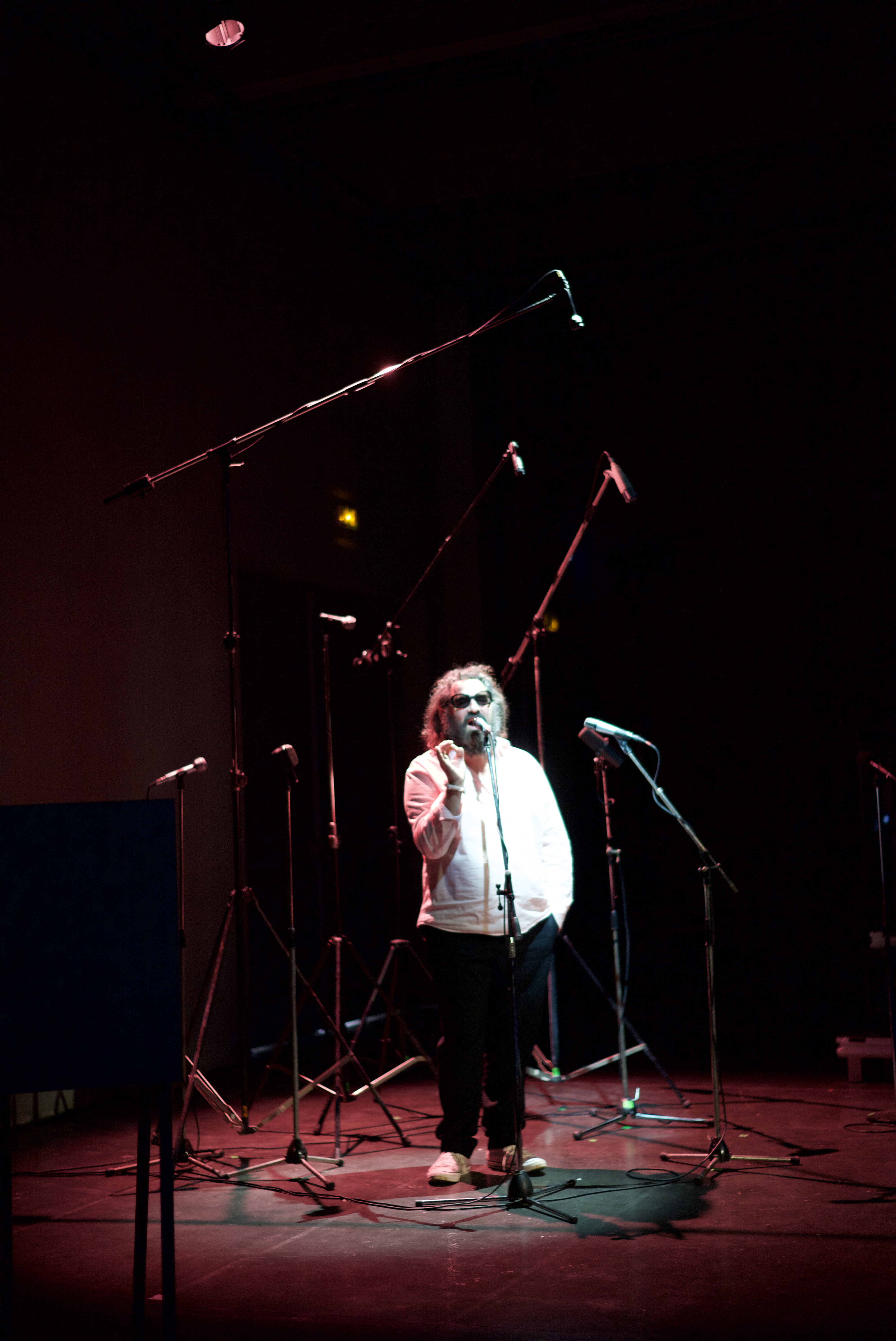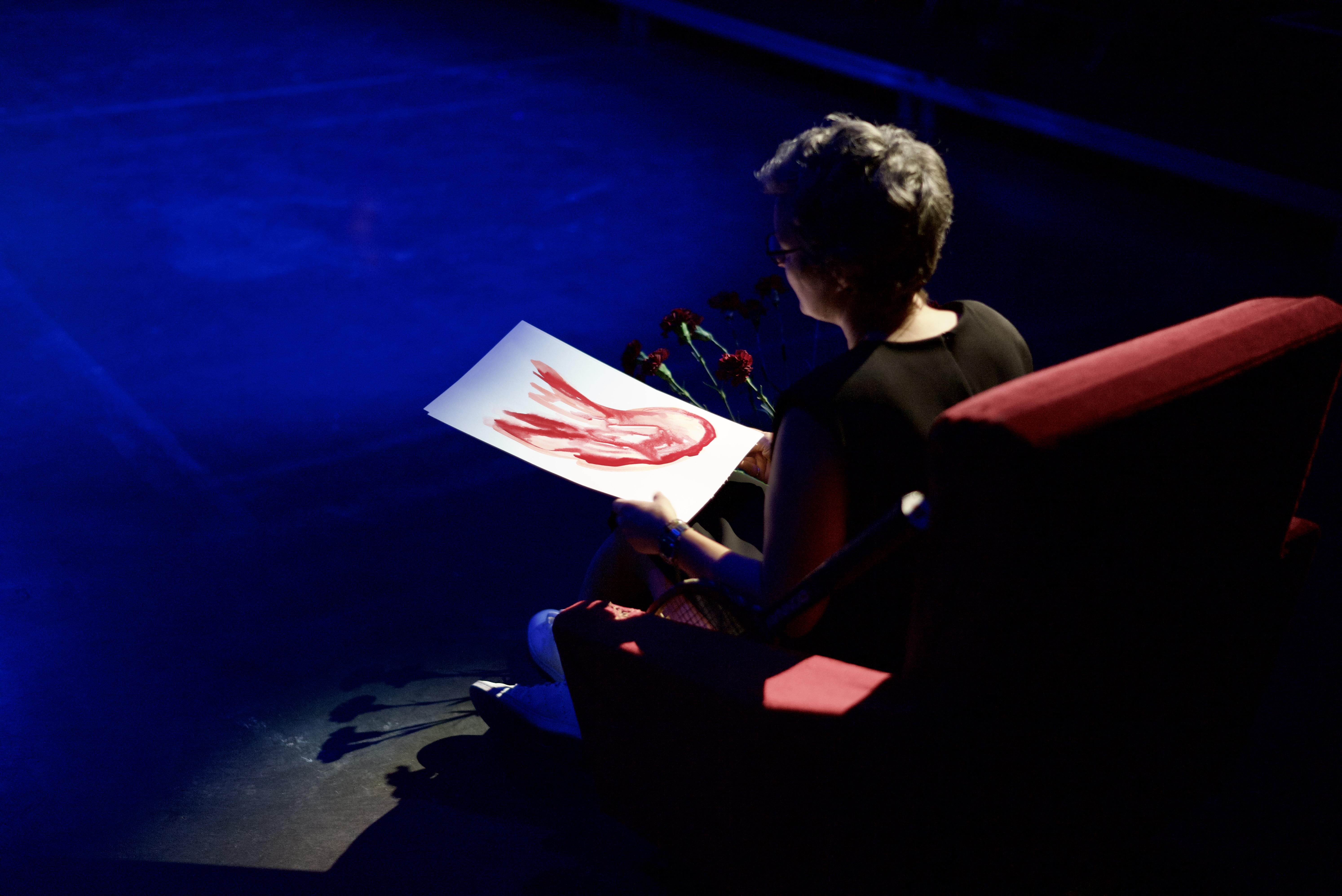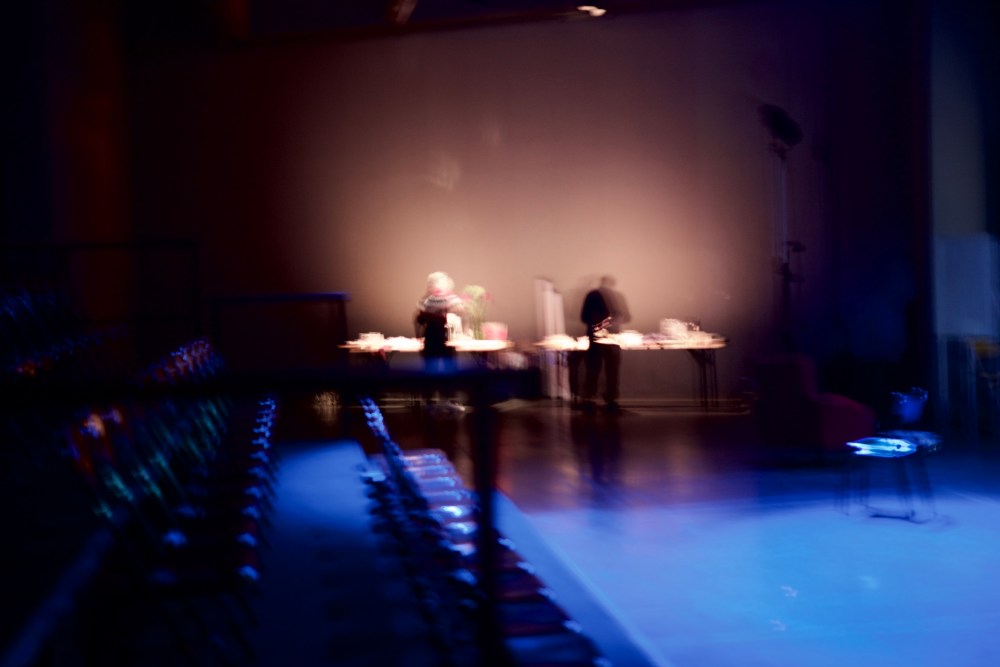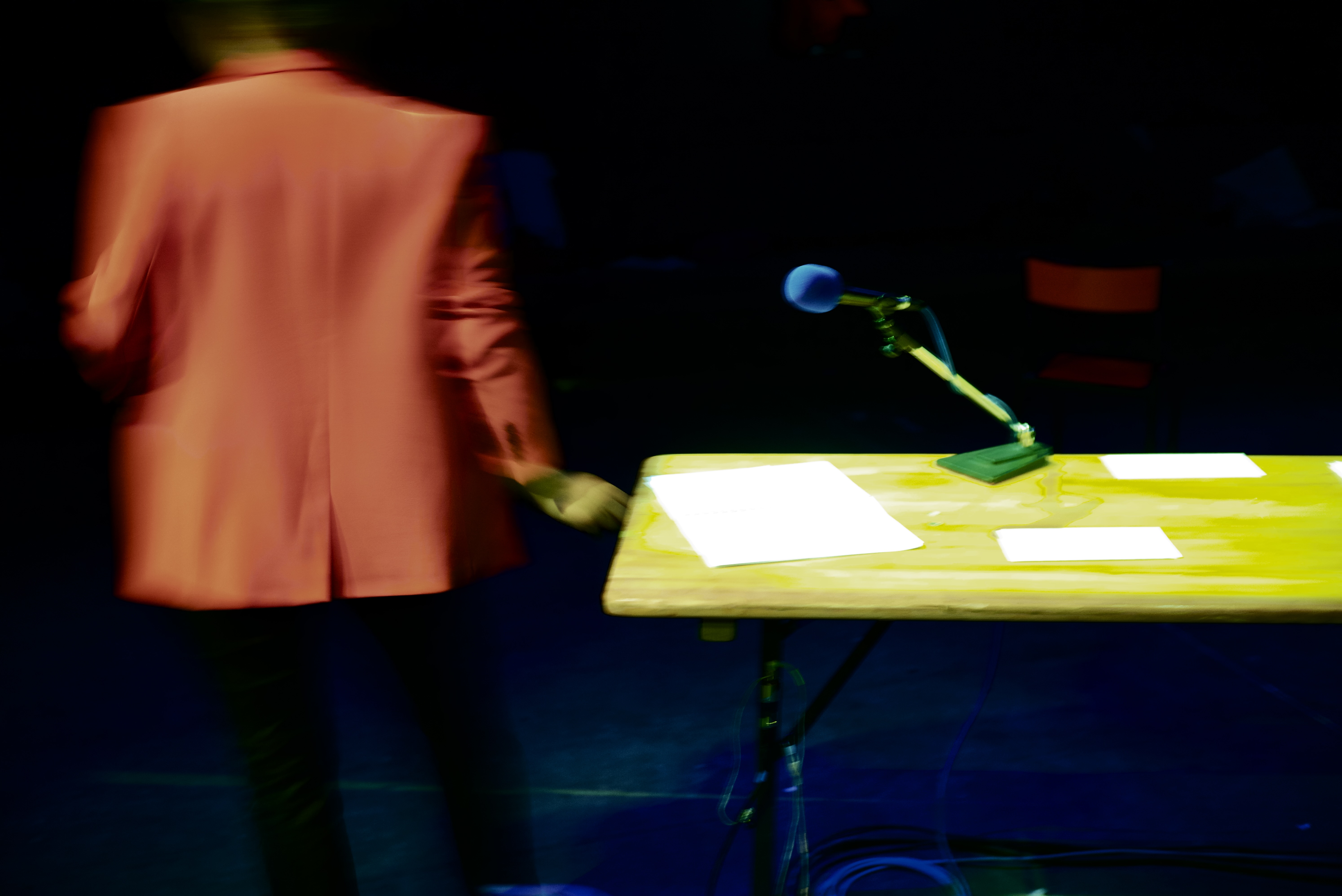 Ca filme, tandis que je photographie. Le temps de chaque geste photographique, chaque image (cela, le temps de chaque image, la durée de temps saisie, le flou, les linéaments, est à décrire aussi . Quart de seconde plutôt que centièmes, par choix), se soustrait à la durée du temps filmé. Je ne découvrirai cette video que le lendemain, en travaillant sur les images. (me ramène à ma candeur, à cette discussion sur le pavé de la cour de l’Echangeur, avec Camille Perrin-Springaux, sur l’image mouvante, sur le beau travail de Morgane Ahrach, sur la nécessité, le désir d’inventer. Tout ce qui – précisément- advient ici au plateau. Vivant spectacle)